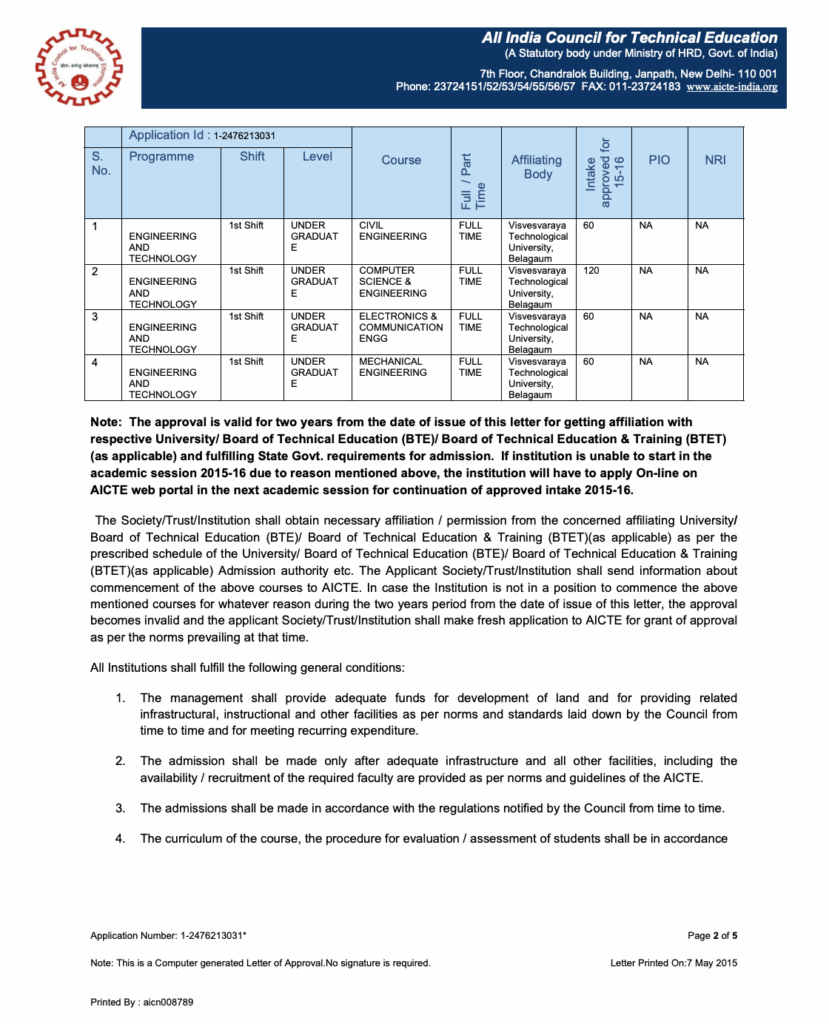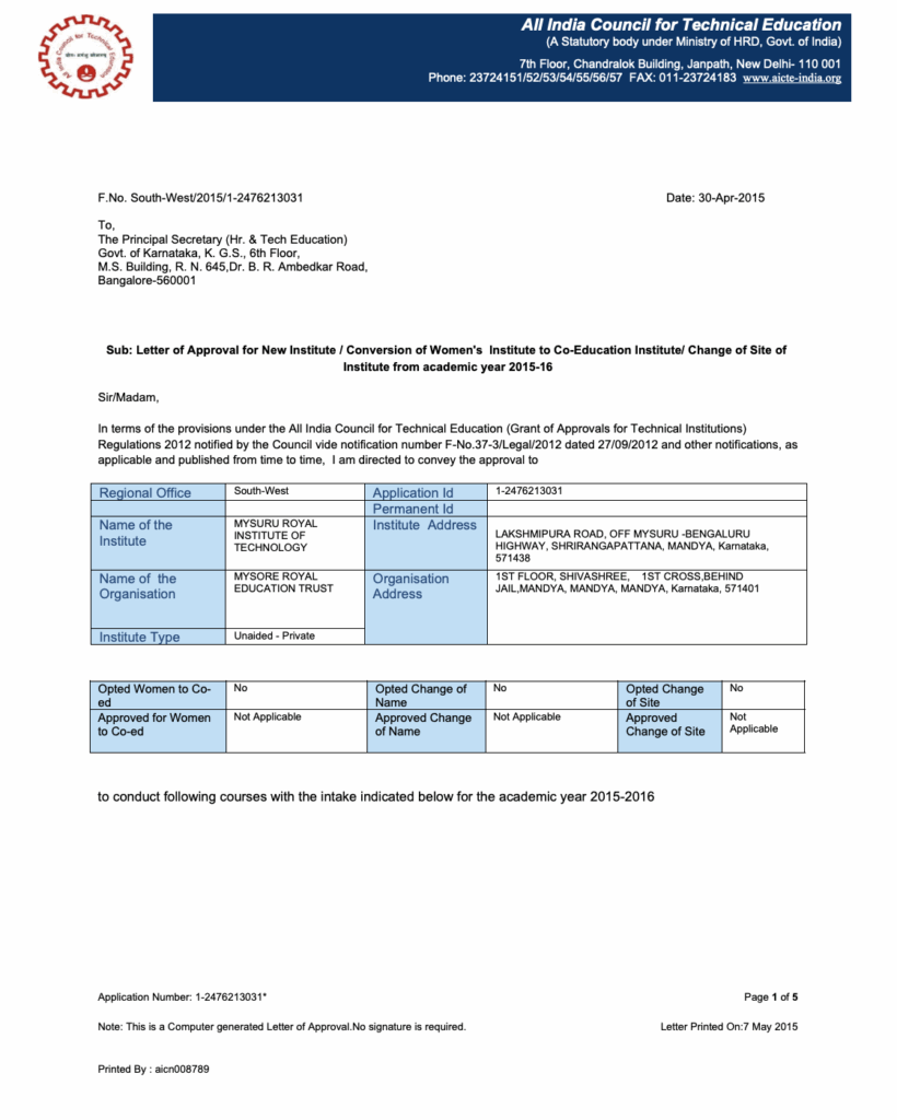 Letter of Approval